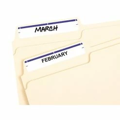 Manage and identify files efficiently; an eye-catching dark blue bar over the white label surface allows for effective color coding and organizing labels for home, office, or school