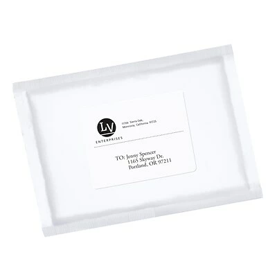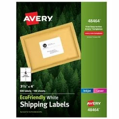 Mail boxes, envelopes and gifts or clearly identify objects with these Avery EcoFriendly shipping labels. The water-based adhesive, soy-based ink and chlorine-free paper are nontoxic and recyclable, and these labels are compatible with inkjet or laser printers so you can create professional address labels and use logos or graphics. These Avery EcoFriendly shipping labels are made with recycled material for environmental sustainability.
