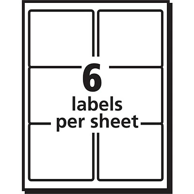 Six labels per sheet, 100 sheets per pack; 600 total labels