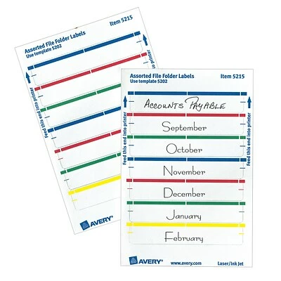 Create handwritten file label stickers with ease or use your personal laser or inkjet printer for a more polished finish; not recommended for use with color laser printers
