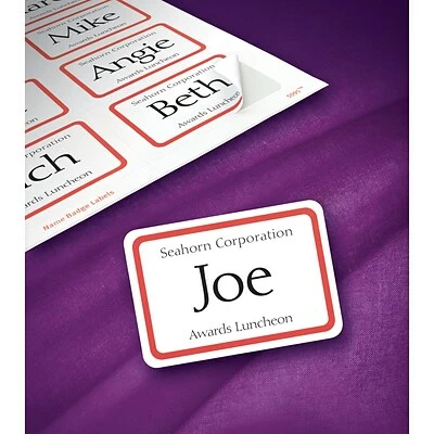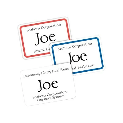 Create high-quality name tags from your home or office with these Avery self-adhesive name tags. They stick firmly to fabric and can be separated easily from the printed sheet while the individual badge backing remains intact. These Avery self-adhesive name tags are sold in packs of 400 so even the largest conferences, meetings, and special events are covered.