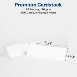 The premium cardstock material of these Avery laser and inkjet embossed tent cards features a smooth surface that feeds automatically through most printers easily. The cards include free Avery software and templates for easy setup and customization.