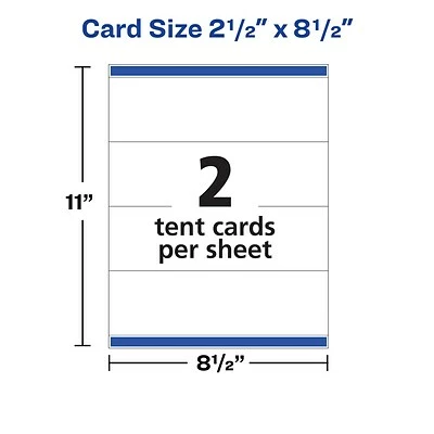 Give any event a professional appearance with these embossed tent cards. The heavyweight cardstock of these cards comes scored for easy, even folding and the print-to-the-edge capabilities allow the addition of borders or graphics for a high-end look. These Avery tent cards work in both inkjet and laser printers and can be printed double-sided.
