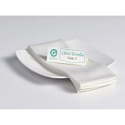 Feature these high-quality white place cards at parties, meetings, trade shows, and special events. These cards are crafted from premium card stock and compatible with both laser and inkjet printers, so you can easily personalize them for your event. These Avery textured place cards feature a print-to-the-edge feature, letting you add colors or printed decoration throughout their design.