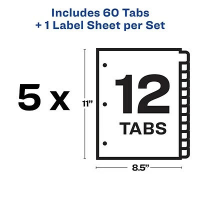12-tab sets of three-hole punched dividers