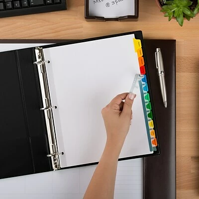 Find binder sections easily with white tabbed dividers featuring brightly colored tabs perfect for color coding and quick referencing