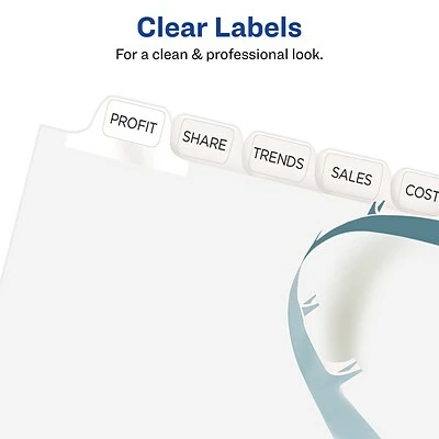 Get a professional, printed-on look with clear labels that virtually disappear on the white divider tabs