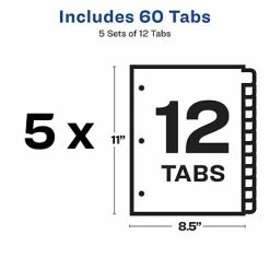 Easily create print shop quality personalized binder dividers with tabs while staying environmentally-friendly with Avery EcoFriendly Index Maker Clear Label Dividers. Made from 100% post-consumer recycled paper, these 3 ring binder dividers with tabs are a great addition to your medical office supplies, school binders, personal organizers, tax office supplies, presentation reports and more. Customize the title tabs for your dividers quickly and easily using the free templates on the Avery website and print with your inkjet or laser printer for clean, professional looking results in minutes. This pack comes with 5 sets of 12 tab dividers, and the Easy Apply clear label strips make it simple to apply all 12 labels of each set at once. Just print, align labels against tabs, smooth down labels and peel up strip. Each 3-hole punched durable divider also features doubled-sided, reinforced tabs and edges to help resist tearing for long-lasting, everyday use. Print, peel, and press your way to a perfect, precise project.