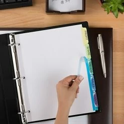 Find binder sections easily with white tabbed dividers featuring pastel colored tabs perfect for color coding and quick referencing