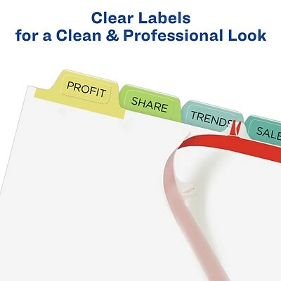 Achieve a clean, printed-on look; clear labels virtually disappear on your tab dividers for a professional presentation