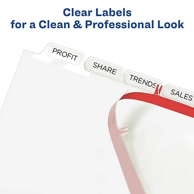Get a professional, printed-on look with clear labels that virtually disappear on the white divider tabs