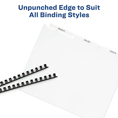 Customize and organize your bound documents with tabbed dividers that feature an unpunched edge to suit any binding system