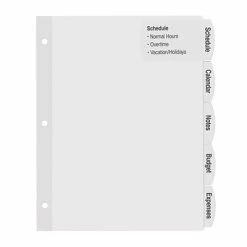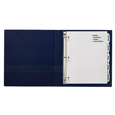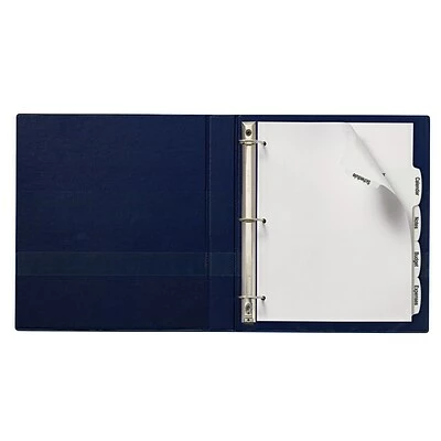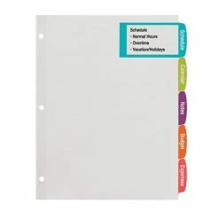 Large labels extend from the tabs onto each divider body – more room to fit content, logos or graphics on your tab labels. Easy Peel(R) labels with the Pop-up Edge(R) for fast, easy tab labeling – no inserts needed. Arched shaped tabs and labels give a contemporary look. Print in black & white or create a custom color set with print-to-the-edge labels. Easy to customize with free templates and designs using Avery Design & Print (avery.com/print). Reinforced holes and tabs for extra durability. Bonus standard label sheet included for labeling back of tabs – allows for quick referencing.
