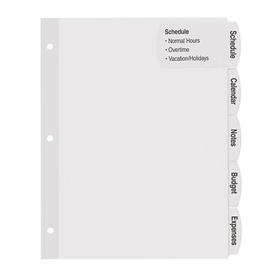 Large labels extend from the tabs onto the divider bodies so you can fit more information, section contents, logos, or customized graphics on your divider tabs