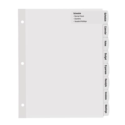 Large labels extend from the tabs onto the divider bodies so you can fit more information, section contents, logos, or customized graphics on your divider tabs