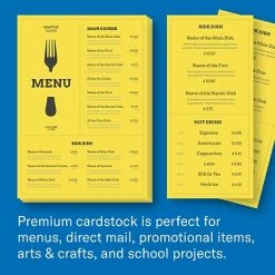 High-quality colored cardstock paper can be used in laser and inkjet copiers and printers; perfect for color-coding