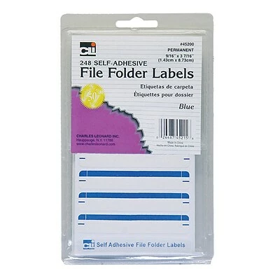 Self-sticking blue labels feature permanent adhesive. Great for Color coding and organizing files. 9/16″ x 3-7/16″