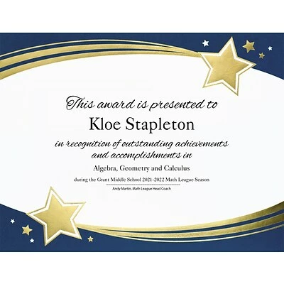 Great Papers® Shooting stars foil certificate measuring 8.5″ x 11″ offers attractive and professional look. Certificate is an ideal choice to print your own reward in schools/office and other general purpose applications.