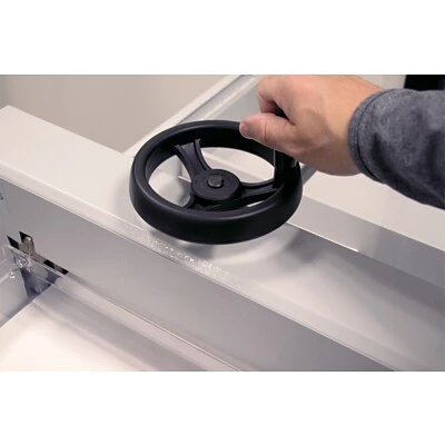 Using the Cut-True 15M is simple – load a stack of paper, secure with the geared clamp, and pull down on the lever arm; it’s that easy. Operators can make fine adjustments with the spindle-guided back gauge and calibrated scales. The LED laser cut line shows exactly where the blade will cut and the geared clamping system holds stacks in place for pinpoint accuracy.