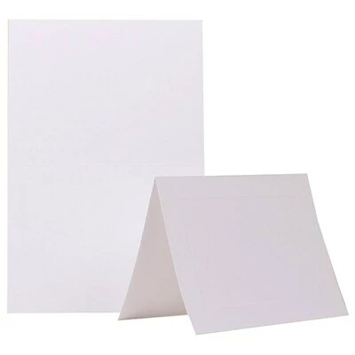 JAM Paper® White Panel A7 Blank Foldover Cards measure 5 x 6 5/8 inches in size and are made out of smooth, high quality, 65lb card stock. These cards are sold in a box containing a large total of 500 cards! Each one features a plain white color and fits perfectly into a standard, A7 sized envelope when folded. To make folding easy, each o0ne has a clear crease in the middle. On the front of each card, there is a full embossed border. These cards are printer friendly and compatible with most types of ink, these cards are ideal for creating custom greeting cards, invitations, response cards, and more! Use them for your next upcoming celebration.