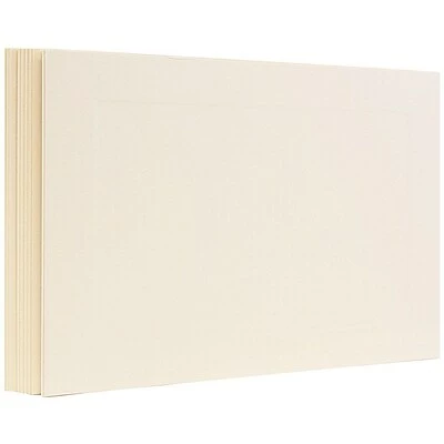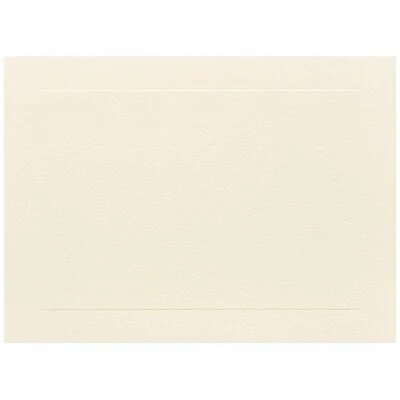 The beauty of JAM Paper® Blank Note Cards is that they provide the perfect canvas to create your own personal message. Decorate the outside and customize the inside, you are totally in charge of what these cards will look like. These ivory cards are neutral and are made of smooth, 80lb cardstock. The quality of this paper is sure to keep writing effortless and fluid. They also feature an embossed border on the front, so it adds a touch of classy elegance. These are not fold over cards. They measure 4 5/8 x 6 1/4 inches, fit perfectly into our A6 envelopes, and provide ample room to write your message on the back. They are sold in packs of 50.Size: 4 5/8 x 6 1/4 inches | Color: Ivory | Quantity: 50/pack