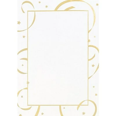 Great Papers® “Gold Stars & Streamers” Flat card invitation with envelope measures 5.5″ x 7.75″. Flat card is compatible with inkjet and laser printers.