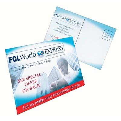 Bring a professional look to promotions and correspondence with these color laser printer postcards. The matte finish helps text and graphics stand out, while the convenient size meets U.S. postal regulations. These Avery postcards feature perforated edges for clean tear-free separation.
