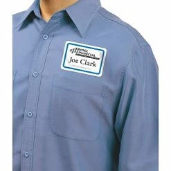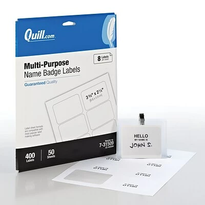 Keep a stock of Quill name badges to quickly print or write names of people attending your company’s open house or a new employee. The sticky back affixes to clothing easily and stays in place until the person pulls it off at the end of the day. You can use these name badges to identify visitors to your manufacturing plant, daycare center or event venue.