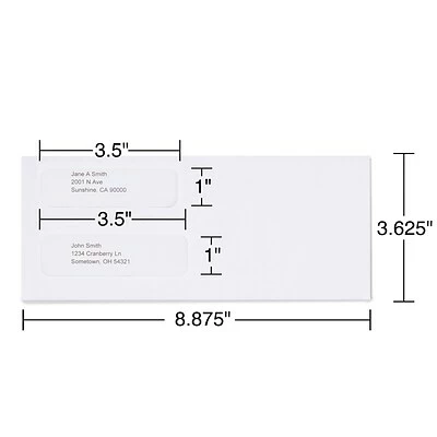 These double-window envelopes offer a perfect size for mailing checks printed with sender and recipient information. The top window offers space for your return address, while the larger bottom window allows mail carriers to easily see the recipient’s name and address for proper delivery.