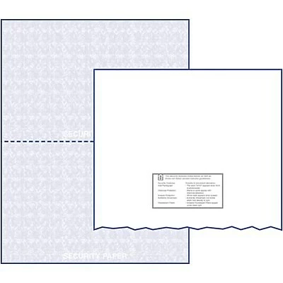 Reflex blue ink; 25# white check protect security paper
