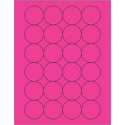 1 2/3″ Fluorescent Pink Circle Laser Labels. Use to create your own product or mailing labels. Labels work with both laser and ink jet printers. Permanent adhesive. Labels stick to a variety of smooth surfaces including paper, corrugated, plastic, wood, glass and metal.