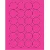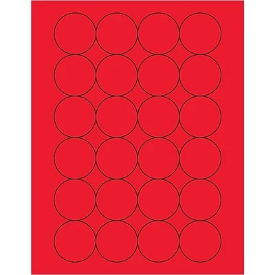 1 2/3″ Fluorescent Red Circle Laser Labels. Use to create your own product or mailing labels. Labels work with both laser and ink jet printers. Permanent adhesive. Labels stick to a variety of smooth surfaces including paper, corrugated, plastic, wood, glass and metal.