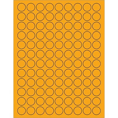 3/4″ Fluorescent Orange Circle Laser Labels. Use to create your own product or mailing labels. Labels work with both laser and ink jet printers. Permanent adhesive. Labels stick to a variety of smooth surfaces including paper, corrugated, plastic, wood, glass and metal.