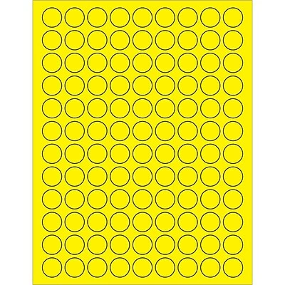 3/4″ Fluorescent Yellow Circle Laser Labels. Use to create your own product or mailing labels. Labels work with both laser and ink jet printers. Permanent adhesive. Labels stick to a variety of smooth surfaces including paper, corrugated, plastic, wood, glass and metal.