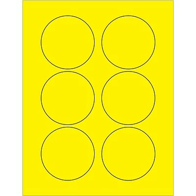 3″ Fluorescent Yellow Circle Laser Labels. Use to create your own product or mailing labels. Labels work with both laser and ink jet printers. Permanent adhesive. Labels stick to a variety of smooth surfaces including paper, corrugated, plastic, wood, glass and metal.