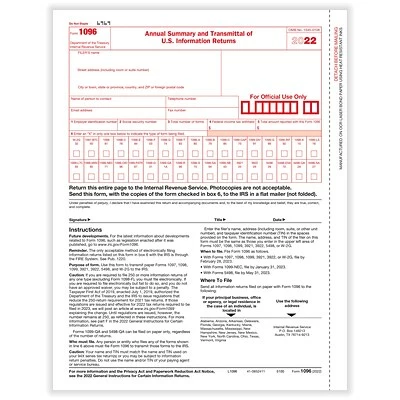 Use form 1096 to submit the totals from information returns to the Internal Revenue Service