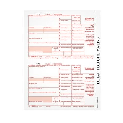 Satisfy IRS Tax requirements with TOPS 1099DIV Tax Forms. 1099DIV Dividends & Distributions -1 part Copy A laser cut sheet form. Laser printer compatible. Size: 8 1/2″ x 11″.